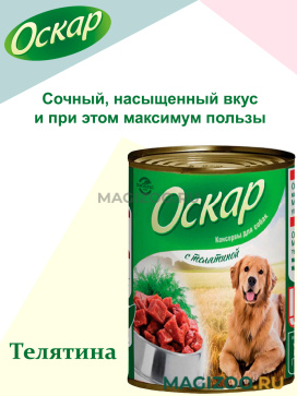 Сочный насыщенный вкус и при этом максимум пользы: консервы ОСКАР разработаны совместно с ведущими ветеринарами и содержат комплекс необходимых собакам витаминов, минералов и микроэлементов.