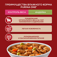 • Влажный корм для собак Purina One является полнорационным и содержит необходимые для здоровья микронутриенты.