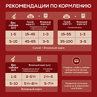 Указанные нормы рекомендованы для поддержания собаки в оптимальной физической форме. Меняйте суточную норму кормления в зависимости от уровня активности собаки, ее физических особенностей и индивидуальных потребностей. Для контроля здоровья вашей собаки обращайтесь в ветеринарную клинику на регулярной основе.