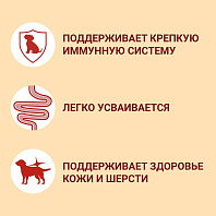 Пес обожает влажные корма за их оптимальную текстуру и хороший вкус. Корм состоит из овощей и мяса - это основные ингредиенты, которые придают отменные вкусовые свойства. Удобно , что корм полнорационный , поэтому о покупке дополнительных добавок хлопот нет. Да и в целом - готовые корма - это мегаудобно!