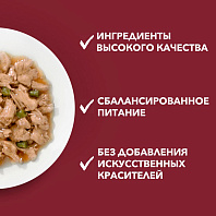 • Влажный корм Purina One сочетает мягкие кусочки и овощи с аппетитной подливой, что увеличивает его вкусовую привлекательность.