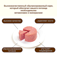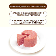 Консервы подходят для кормления собак, которые питаются как сухими кормами, так и натуральной пищей. Несмотря на присутствие в составе бульона, животное должно иметь постоянный доступ к чистой питьевой воде.
