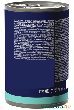 Полнорационный влажный консервированный корм премиум-класса с индейкой и тыквой для взрослых собак всех пород с чувствительным пищеварением.