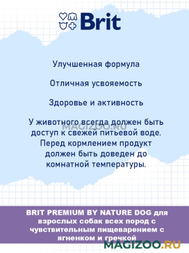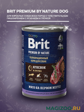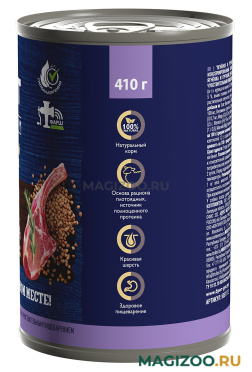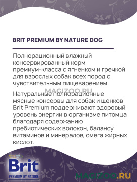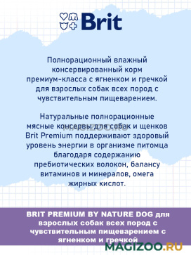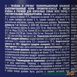 Полнорационный влажный консервированный корм премиум-класса с ягненком и гречкой для взрослых собак всех пород с чувствительным пищеварением.