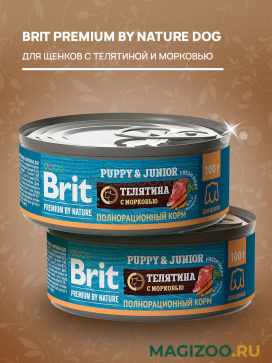 Полнорационный влажный консервированный корм премиум-класса с телятиной и морковью для щенков всех пород.