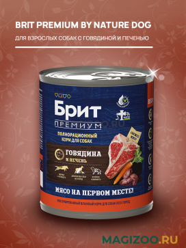Влажный корм (консервы) BRIT PREMIUM BY NATURE DOG для взрослых собак с говядиной и печенью 5051151 (850 гр)