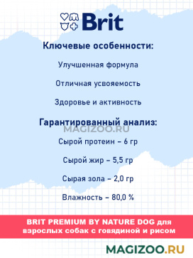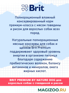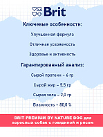 Натуральные полнорационные мясные консервы для собак и щенков Brit Premium поддерживают здоровый уровень энергии в организме питомца благодаря содержанию пребиотических волокон, балансу витаминов и минералов, омега жирных кислот.