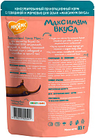 Состав: 75 % мясо и мясные субпродукты (в том числе телятина 10 %), мука рисовая, мука пшеничная, клетчатка свекловичная, рыбий жир, минерально-витаминный комплекс, загуститель.