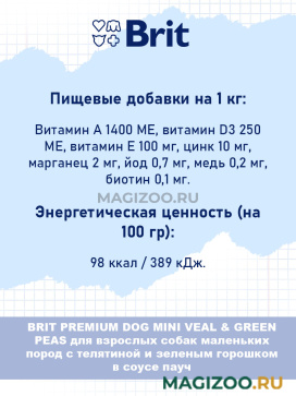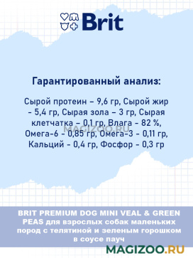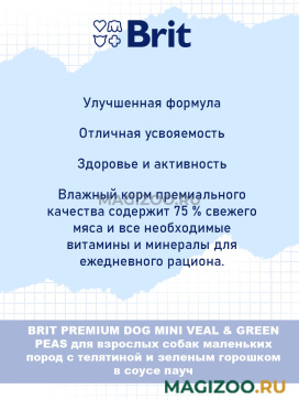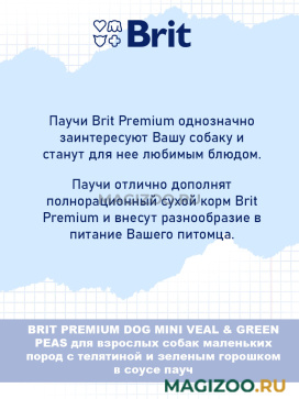 Паучи отлично дополнят полнорационный сухой корм Brit Premium и внесут разнообразие в питание Вашего питомца.