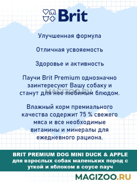 Паучи отлично дополнят полнорационный сухой корм Brit Premium и внесут разнообразие в питание Вашего питомца.