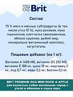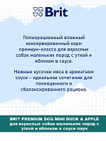 Полнорационный влажный консервированный корм премиум-класса для взрослых собак маленьких пород с уткой и яблоком в соусе.