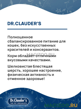 Благодаря новейшим разработкам все корма бренда DR.CLAUDER’S обогащены минералами и витаминами и не содержат консервантов и красителей.