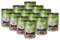 Состав: мясо и животные субпродукты (дичь 4% мин), злаки, растительные белковые экстракты, минералы, сахароза.
