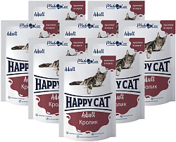 HAPPY CAT - полнорационный сбалансированный корм в виде нежных кусочков в соусе с кроликом для взрослых кошек!
