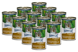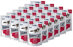 HAPPY CAT - полнорационный сбалансированный корм в виде нежных кусочков соусе с ягненком и индейкой для взрослых кошек!