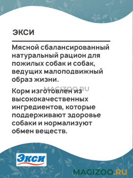 Мясной сбалансированный натуральный рацион для пожилых собак и собак, ведущих малоподвижный образ жизни.