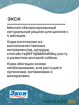 Мясной сбалансированный натуральный рацион для щенков с 4 месяцев.