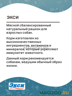 Мясной сбалансированный натуральный рацион для взрослых собак.