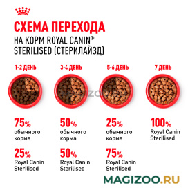 Для удовлетворения индивидуальных предпочтений каждой кошки ROYAL CANIN Sterilised выпускается как в форме хрустящего сухого, так и в форме нежного влажного корма: возможно выбрать кусочки в соусе либо паштет. Если Вы выбрали для вашей кошки смешанное питание, следуйте нашим рекомендациям в рационных таблицах: это позволит смешивать сухой и влажный продукт в пропорциях, оптимальных для здоровья животного.