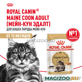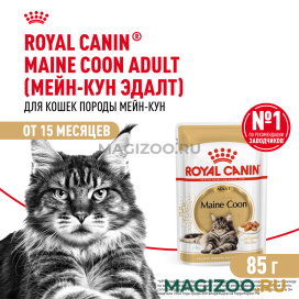 Нежные и мелкие ломтики в соусе для взрослых кошек старше 15 месяцев породы Мэйн Кун.