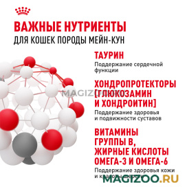 - Поддержание здоровья суставов. Продукт поддерживает здоровье костей и суставов мейн-куна.