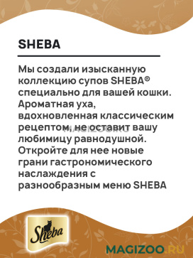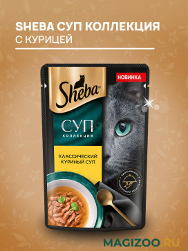 Полнорационный консервированный корм SHEBA «СУП КОЛЛЕКЦИЯ» для взрослых кошек с добавлением курицы.