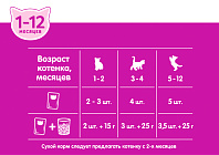Брала специально для маленькой кошечки, которая только начала привыкать к готовому корму. Понравилось, что консистенция нежная и легко естся. Котенок с первой же порции стал уплетать за обе щечки. Очень довольна качеством и тем, что корм подходит именно для малышей