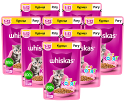 Полнорационный консервированный корм Whiskas для котят от 1 до 12 месяцев – рагу с курицей.