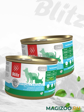 Консервированный корм Blitz Hypoallergenic Dog — это вкусный и полезный нежный корм для собак, склонных к расстройствам пищеварения, аллергическим реакциям и атопическому дерматиту.