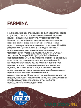 FARMINA CAT N&D OCEAN - это линия беззерновых продуктов, с высоким содержанием рыбы и моллюсков.