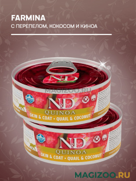Полноценный сбалансированный беззерновой рацион класса холистик с перепелом, кокосом и киноа для взрослых кошек.