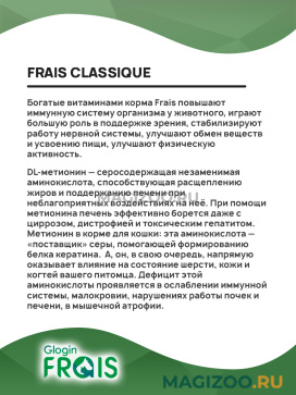 Богатые витаминами корма Frais повышают иммунную систему организма у животного, играют большую роль в поддержке зрения, стабилизируют работу нервной системы, улучшают обмен веществ и усвоению пищи, улучшают физическую активность.
