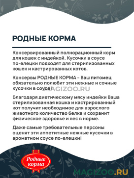Консервы РОДНЫЕ КОРМА – Ваш питомец обязательно полюбит эти нежные и сочные кусочки в соусе!