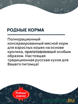 Полнорационный консервированный мясной корм для взрослых кошек на основе кролика, приготовленный особым образом. Настоящая традиционная русская кухня для Вашего питомца!