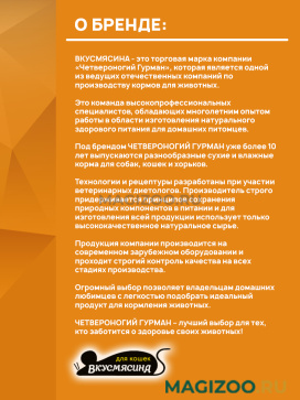 Под брендом ЧЕТВЕРОНОГИЙ ГУРМАН уже более 10 лет выпускаются разнообразные сухие и влажные корма для собак, кошек и хорьков.