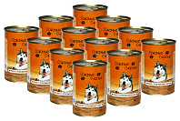 Говядина, мясо птицы, субпродукты, натуральная желирующая добавка, злаки (не более 2 %), соль, вода.