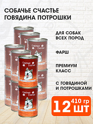 Влажный корм (консервы) СОБАЧЬЕ СЧАСТЬЕ для взрослых собак с говядиной и потрошками в желе (410 гр)