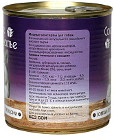 Говядина, субпродукты, овощи, натуральная желирующая добавка, злаки (не более 2 %), соль, вода.
