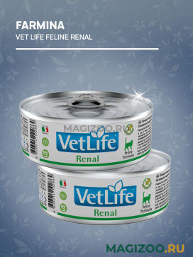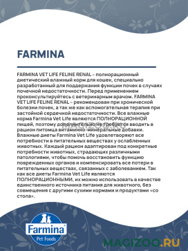 FARMINA VET LIFE FELINE RENAL – полнорационный диетический влажный корм для кошек, специально разработанный для поддержания функции почек в случаях почечной недостаточности.