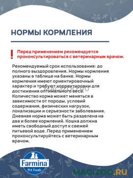 Все влажные корма Farmina Vet Life являются ПОЛНОРАЦИОННОЙ пищей, поэтому дополнительно не требуется вводить в рацион питомца витаминно-минеральные добавки.