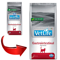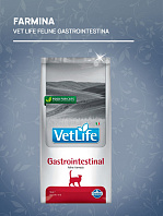 FARMINA VET LIFE FELINE GASTROINTESTINAL – полнорационный диетический влажный корм для кошек, рекомендуемый для лечения синдрома нарушения всасывания и переваривания пищи в ЖКТ, при экзокринной недостаточности поджелудочной железы.