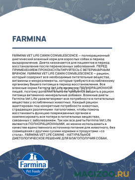 FARMINA VET LIFE CANIN CONVALESCENCE — полнорационный диетический влажный корм для взрослых собак в период выздоровления. Диета назначается для пациентов в период восстановления после перенесенных заболеваний.