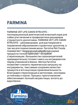 FARMINA VET LIFE CANIN STRUVITE – полнорационный диетический влажный корм для собак для лечения и профилактики рецидивов струвитного уролитиаза.