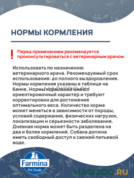 Все влажные корма Farmina Vet Life являются ПОЛНОРАЦИОННОЙ пищей, поэтому дополнительно не требуется вводить в рацион питомца витаминно-минеральные добавки.