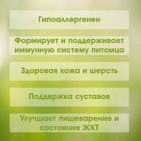Продукт обогащен суперфудами, витамином Е и ФОС и не содержит злаков, искусственных добавок.