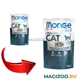 Консервы Monge Grill Pouch для кошек не содержат злаков, сделаны из отборных ингредиентов высокого качества, обогащены витаминами и минералами, что гарантирует заботу о здоровье, качестве и продолжительности жизни питомца.