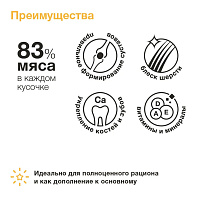 83 % мяса в каждом кусочке. Идеально подходит для котят с 1 го месяца жизни.