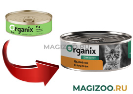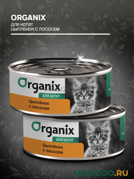 Консервы ORGANIX цыпленок с лососем – вкусный консервированный корм для котят, изготовленный из 100% свежего мяса.