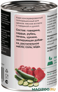 ORGANIX мясное ассорти с говядиной и цукини – вкусный консервированный корм для щенков, изготовленный из 100% свежего мяса.
