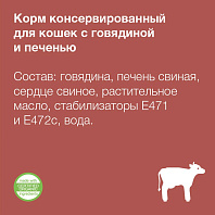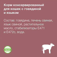 Мясные консервы для взрослых кошек с говядиной и языком.